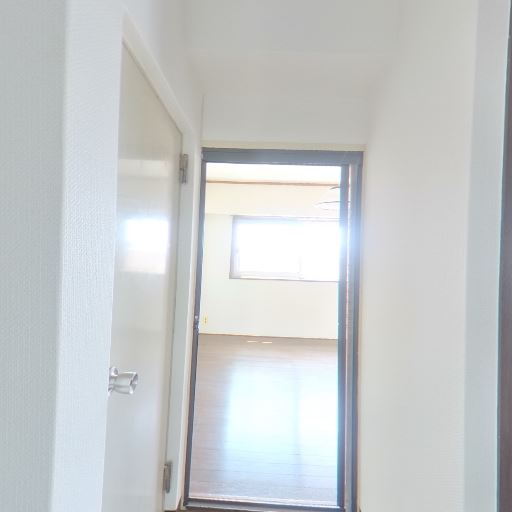 採光の見込み(確度64%):廊下自体は窓がないが、先の居室から強い自然光が入り込んでおり、日中はある程度明るくなりそう。