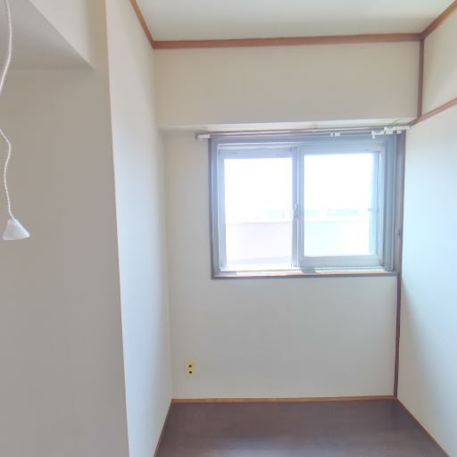 コンセント位置(確度65%):窓下の壁面左側に単口のコンセントが見える。
