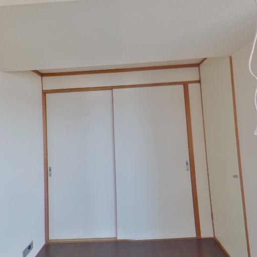 収納の有無(確度78%):壁一面に引き戸タイプの収納がある。扉は2枚で幅広め。