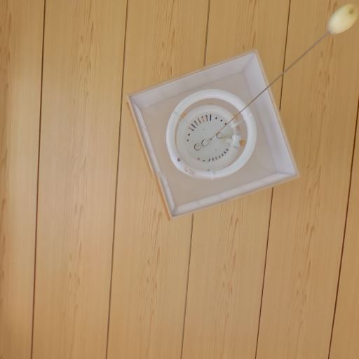 天井照明の状態(確度72%):天井のシーリングライトは器具が露出しており、カバーが外れているか未設置のように見える。