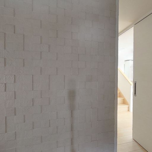 • 内装デザインに質感がある(確度88%):壁面に凹凸のある意匠材が使われており、玄関空間にアクセントと高級感を与えている。