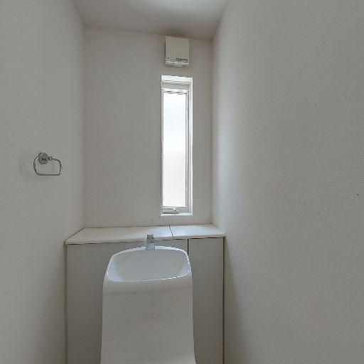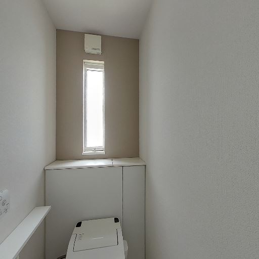 • 上部に換気設備がある(確度75%):窓の上部に換気設備らしき機器が見え、トイレ内の換気性に配慮された構成と推測される。