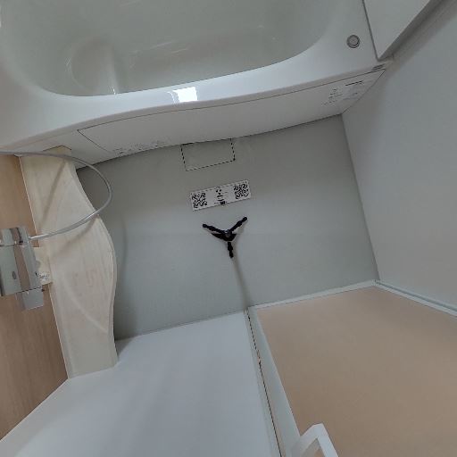 • 浴槽付きで一般的な入浴はしやすそう(確度90%):床画像と鏡越しの映り込みから、しっかりしたサイズの浴槽が設置されていることが確認できる。