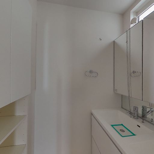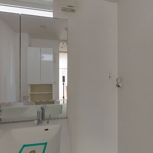 • 三面鏡付きの洗面台(確度94%):洗面台には三面鏡収納が設置されており、身支度のしやすさと小物収納の両立が期待できる。
