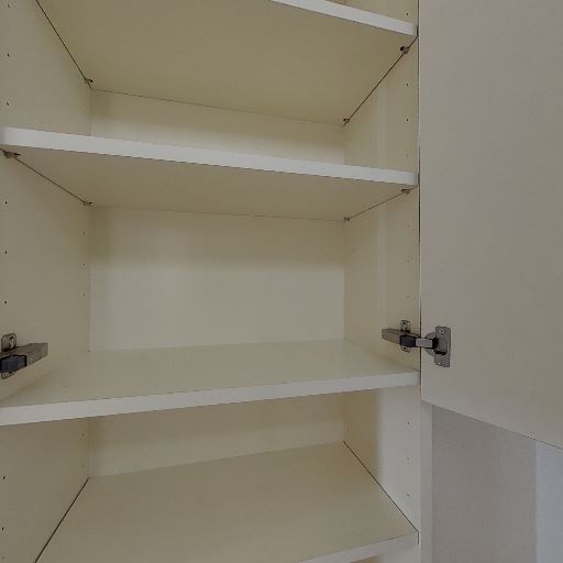 • 壁面は比較的きれいに見える(確度75%):見えている範囲の壁紙や棚周りには、目立つ大きな汚れ、傷、剥がれは確認しにくい。全体として白基調で清潔感のある印象。