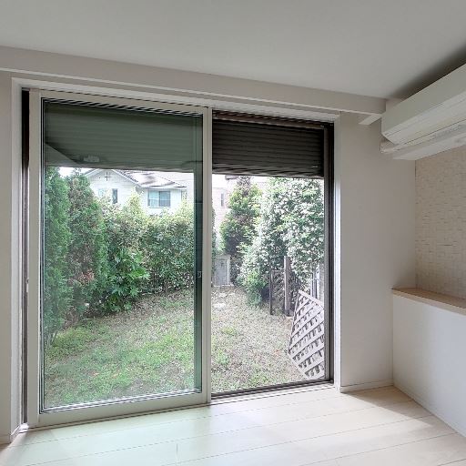 • 庭の緑が見えて雰囲気が良い(確度89%):掃き出し窓の外に植栽や庭スペースが見え、近接する外部空間に緑がある。室内からの眺めとしては柔らかい印象を与える。