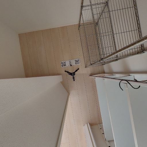 • 室内干し設備がある(確度72%):壁面にタオル掛けとは別のフック金物が見え、天井にもランドリーパイプ用と思われる受け金具が確認できるため、洗面脱衣所で室内干しに対応している可能性が高い。