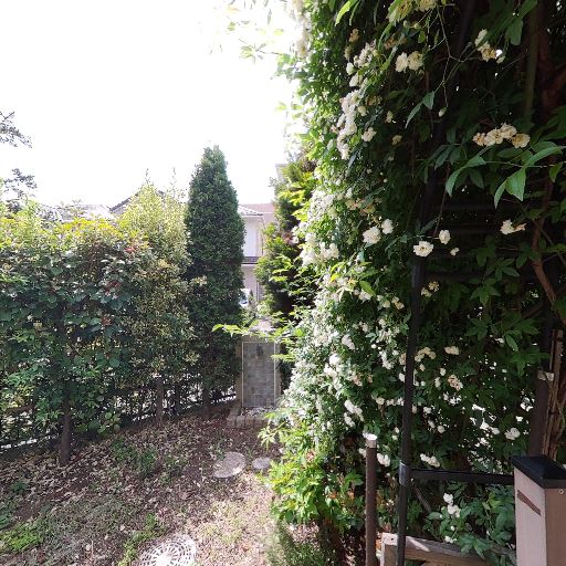 • 植栽が豊富で目隠し性がある(確度88%):庭の周囲に背の高い植栽や生垣、つる植物があり、外部からの視線をある程度遮る効果が期待できる。