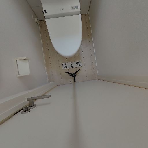 • 収納またはカウンターがあり小物を置ける(確度78%):便器背面にフラットな台状のスペースと扉付き収納らしき造作があり、掃除用品や備品の収納に使えそうである。