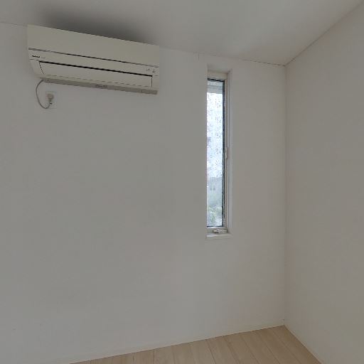 • エアコン設置済みまたは設置前提の設備が見える(確度63%):right上部に室内機らしき設備が確認でき、少なくとも空調設備の設置が考慮された部屋と見られる。
