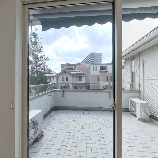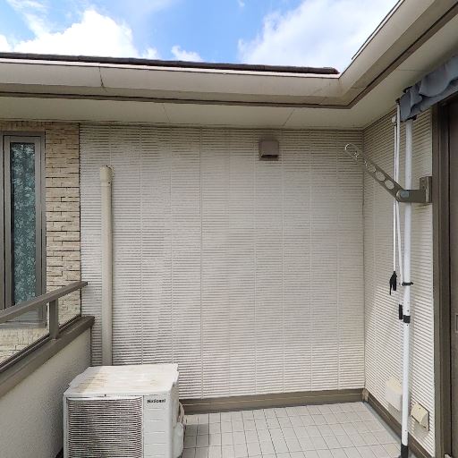 • バルコニーが広めで実用性が高い(確度90%):床面がタイル張りで奥行きがあり、室外機を置いても一定の可動スペースが残っているバルコニーに見える。