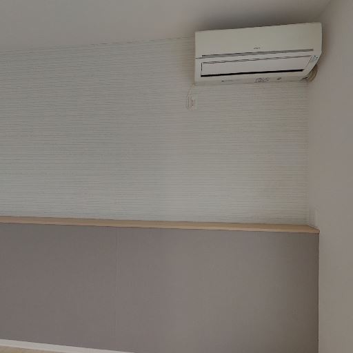 • エアコンが設置済み(確度96%):壁上部にエアコン本体が確認でき、入居後すぐに空調を利用できる状態と見られる。