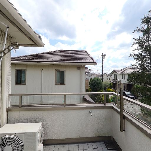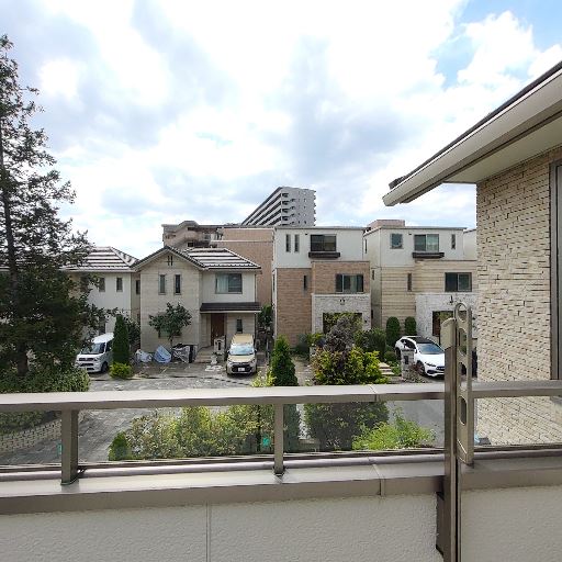 • 開放感のある眺望(確度86%):バルコニー前方に戸建て住宅街が広がっており、目の前が完全に壁で塞がれている状態ではない。空も広く見えている。