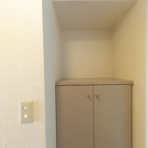 玄関収納の有無(確度83%):玄関脇にカウンター付きの下駄箱が造り付けである。上部はニッチ状で小物置きに使える。
