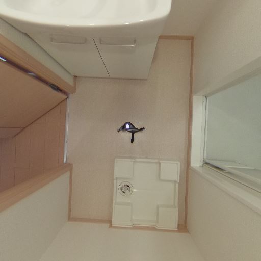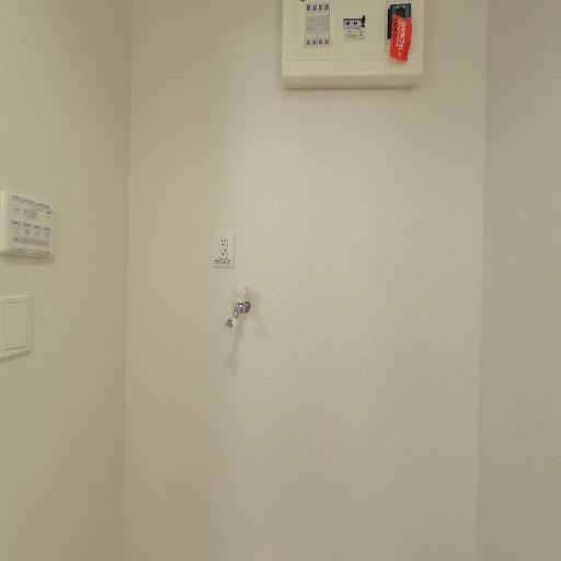 室内洗濯機置き場(確度84%):給水栓と防水パンがあり、洗濯機置き場が確保されている。
