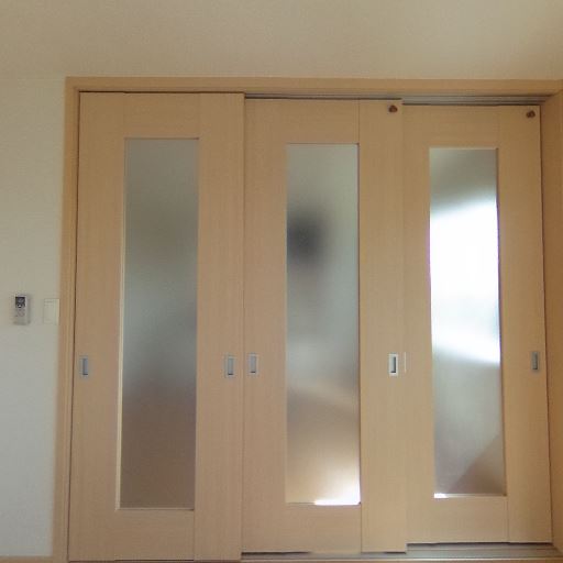 可動間仕切り/引き戸(確度84%):すりガラス入りの4枚引き戸があり、隣室と仕切れる。