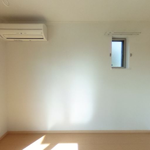 エアコン設置済み(確度95%):壁上部にエアコン本体が確認できる。