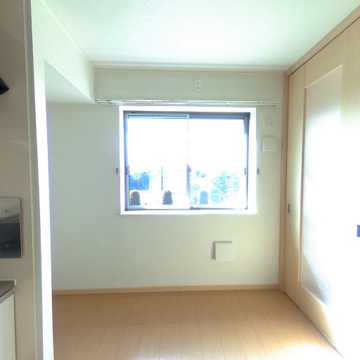 明るさと採光(確度86%):窓があり室内は自然光で明るく見える。窓枠周りも清潔で視界を遮るものがない。