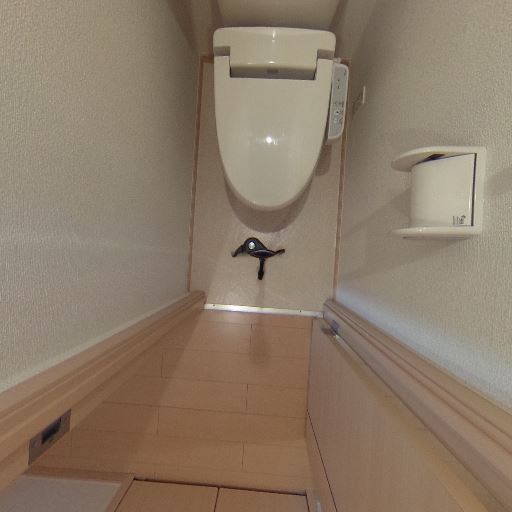 温水洗浄便座が設置済み(確度90%):操作リモコン付きの温水洗浄便座が確認できる。