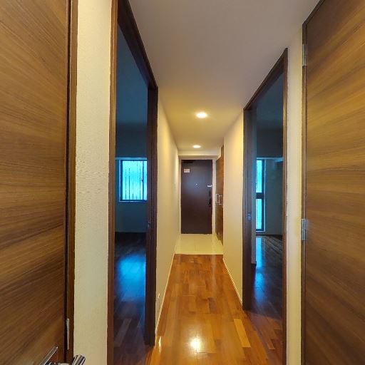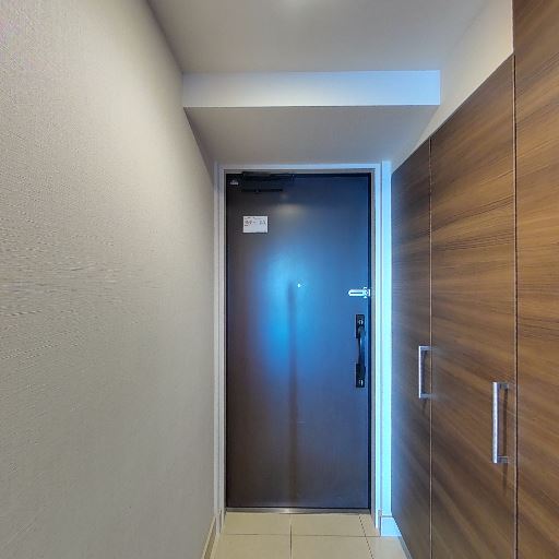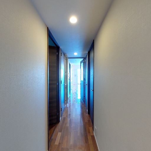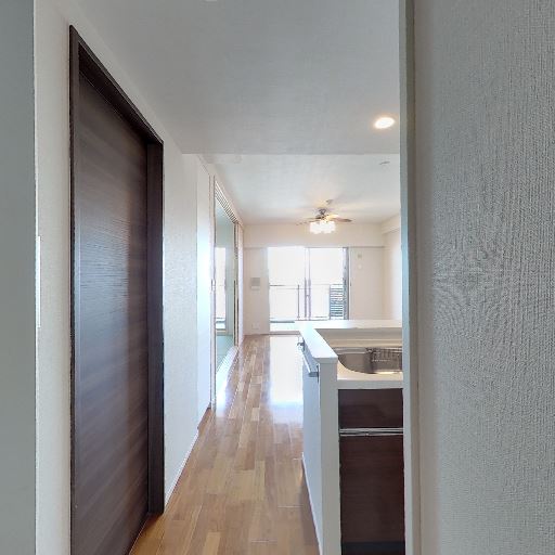 • 天井のダウンライトと下がり天井(確度74%):廊下には埋め込み照明があり、玄関側は梁または下がり天井が見える。