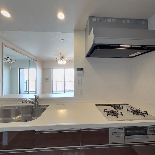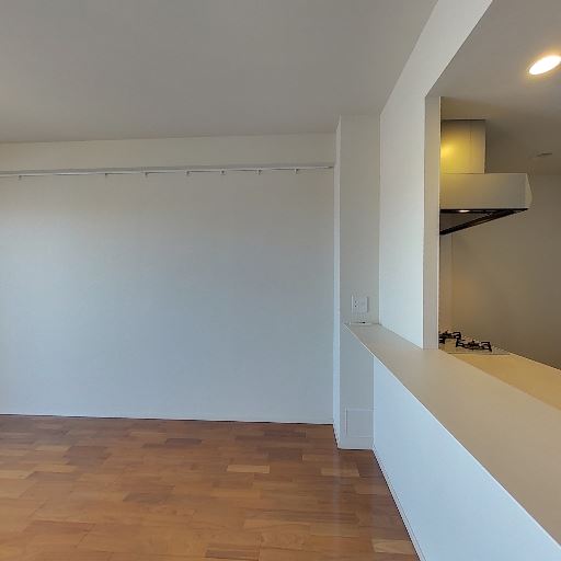 • 対面キッチン(確度82%):シンクがリビング側を向くカウンター型で、天井ダウンライトもあり手元が明るい。