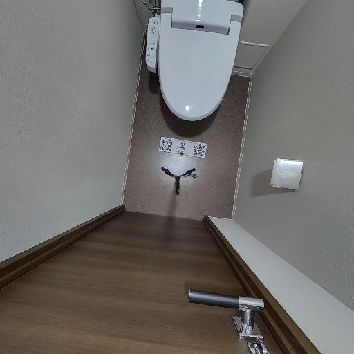 • トイレットペーパーホルダー位置(確度70%):ホルダーが便器右側の壁にあり、座った位置から手が届く距離に見える。