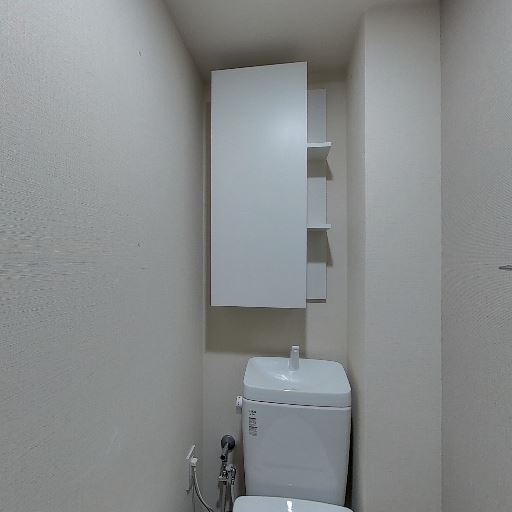 • トイレの設備構成(確度90%):温水洗浄便座付きのトイレで、手洗い一体型タンクと上部に吊戸棚収納がある。