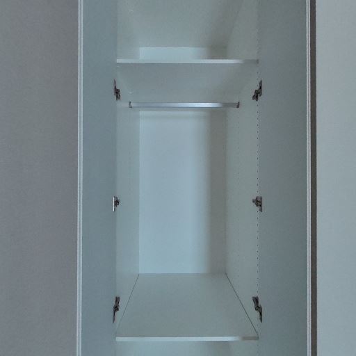 • クローゼット収納(確度90%):開き戸のクローゼットがあり、上段棚・ハンガーパイプ・下段棚の3層構成で衣類や小物を分けて収納できる。