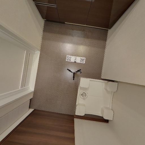 • 室内洗濯機置き場(確度92%):床面に防水パンや給水・排水口、コンセントがあり、洗濯機置き場であることがわかる。