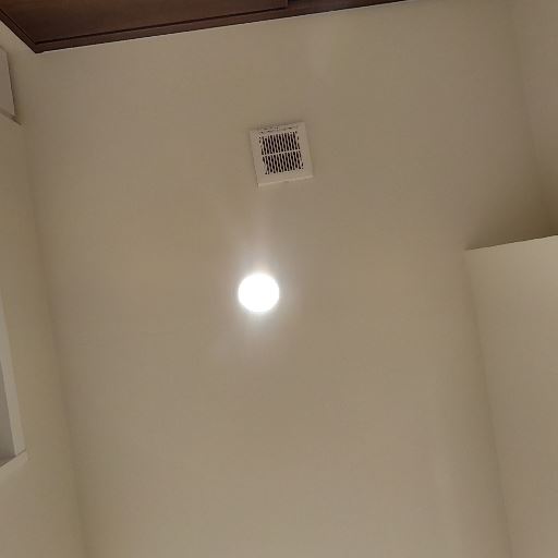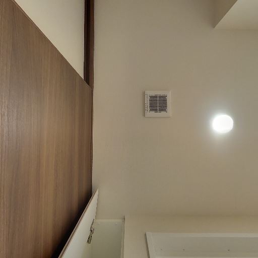• 換気と照明(確度86%):天井にダウンライトと換気扇が設置されている。窓は見当たらない。