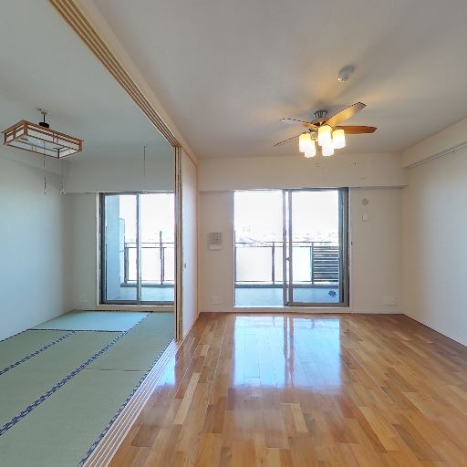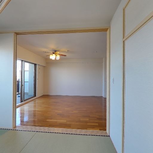 • 採光・眺望(確度82%):和室側にバルコニー面の大きな掃き出し窓があり、外の明るさがしっかり入っている。
