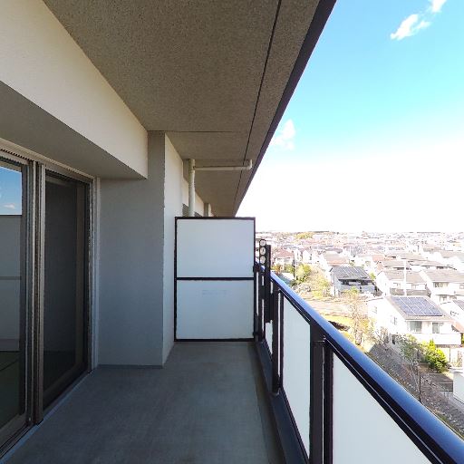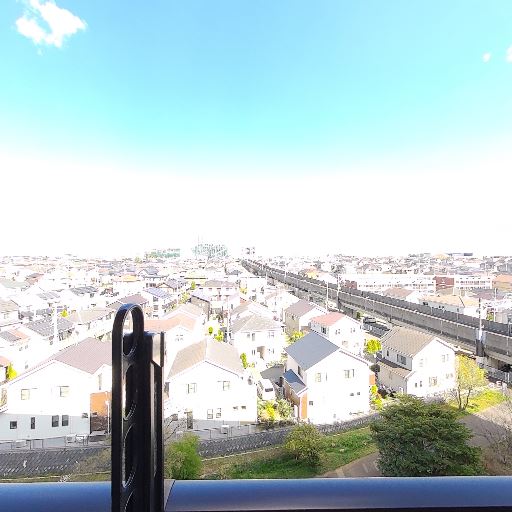 • 眺望の開放感(確度90%):高台または上層階のバルコニーから住宅街と遠方まで抜けた景色が見える。前方に高い建物が少なく視界が広い。