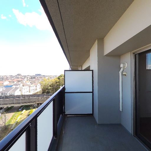 • プライバシー配慮のパネル(確度76%):バルコニーの両端に不透明パネルがあり、隣戸からの視線を遮る構造。