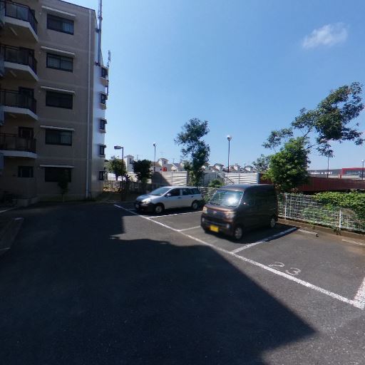 • 敷地内駐車場・駐輪場(確度84%):平面駐車場があり、複数台駐車。隣接して屋根付きの駐輪スペースも確認できる。