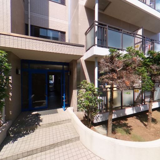 • エントランス周りの雰囲気(確度80%):タイル貼りのエントランスと植栽が整えられており、共用部は比較的清潔に見える。手すりや段差も確認できる。