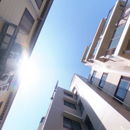 • 日当たり(確度74%):建物間の距離は近いが、上方向は抜けており直射日光が差し込んでいる。時間帯によっては日陰もできやすい。