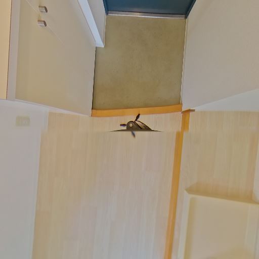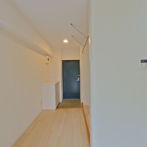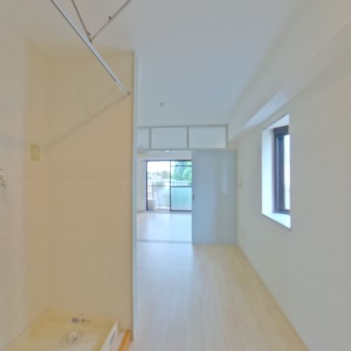 • 室内洗濯機置き場(確度83%):浴室横の凹みに洗濯機パンがあり、上部に物干しバーのような金具も見える。