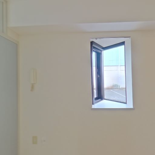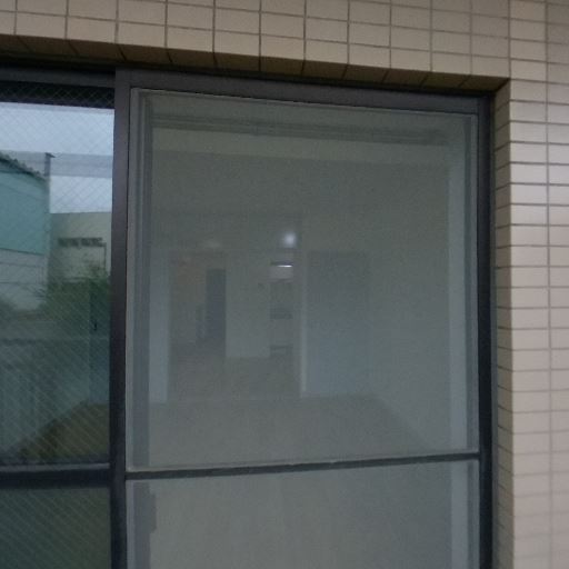 • 採光と窓のサイズ(確度82%):掃き出し窓があり外の景色が見える。窓ガラスは下部がすりガラスで、上部は透明で網入りガラス。