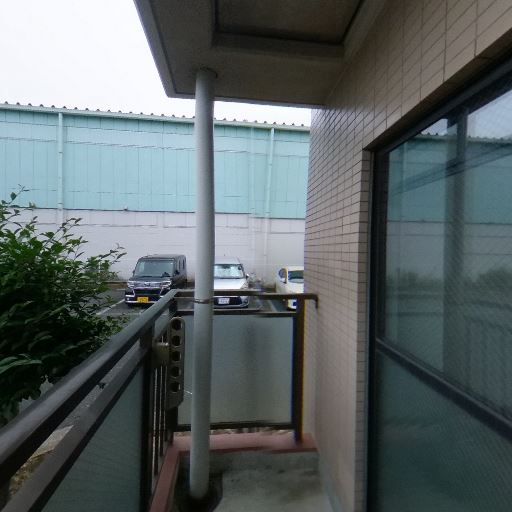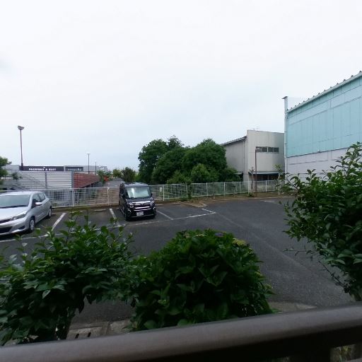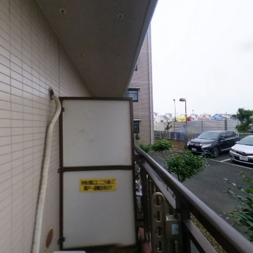 • 1階バルコニー・駐車場に面する眺望(確度78%):バルコニーの正面は敷地内駐車場で、前方は低層の施設・樹木・フェンス。視界は比較的開けており抜け感がある。