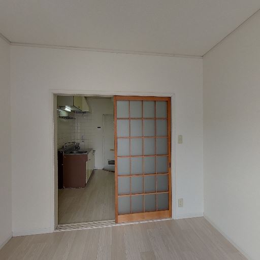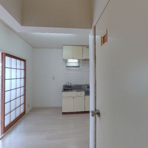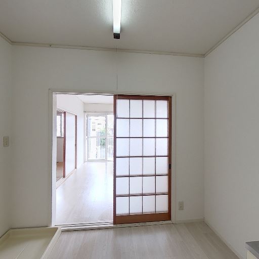 • キッチン付きの居室が明るめ(確度82%):隣接する居室側には大きめの開口部があり、障子越しでも自然光が入って室内全体が比較的明るく見える。