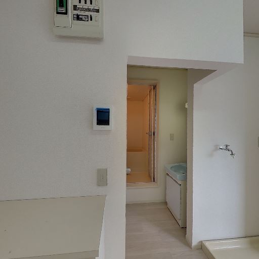 • 水回りが近く生活動線は良さそう(確度87%):室内から洗面台と浴室入口が近い位置にまとまっており、キッチンからもアクセスしやすい間取りに見える。