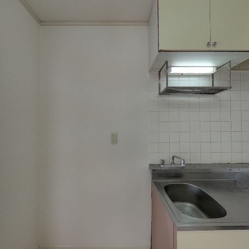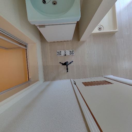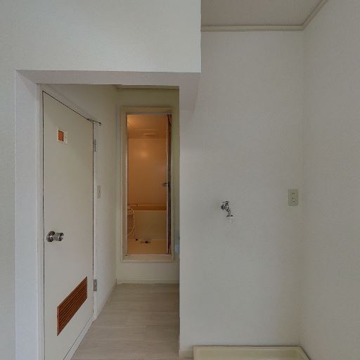 • 室内洗濯機置き場がある(確度97%):壁面の給水栓と床の防水パンが確認でき、室内に洗濯機置き場が設けられている。