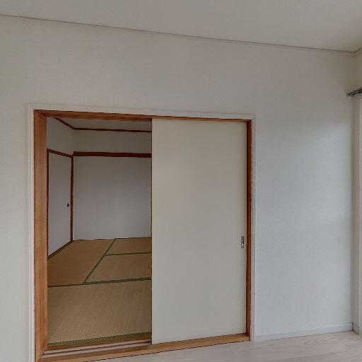 • 隣室とつながる続き間のような構成(確度89%):引き戸の開口部越しにフローリングの隣室が見えており、部屋同士を一体的に使えそうである。