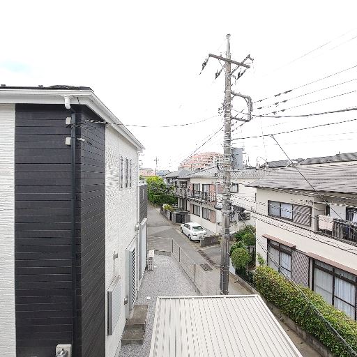 • 前方の抜け感はあるが電柱と電線が目立つ(確度91%):バルコニー前方は完全な壁抜けではなく一定の開放感がある一方、至近距離に電柱があり、視界内に電線が多く入っている。