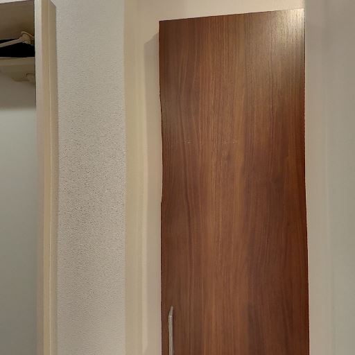建具と床の質感が統一(確度83%):ダークブラウンの扉とフローリングが統一され、落ち着いた印象。