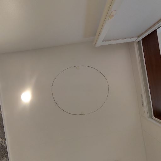 換気設備とダウンライト(確度90%):天井に換気扇と埋込照明が見える。