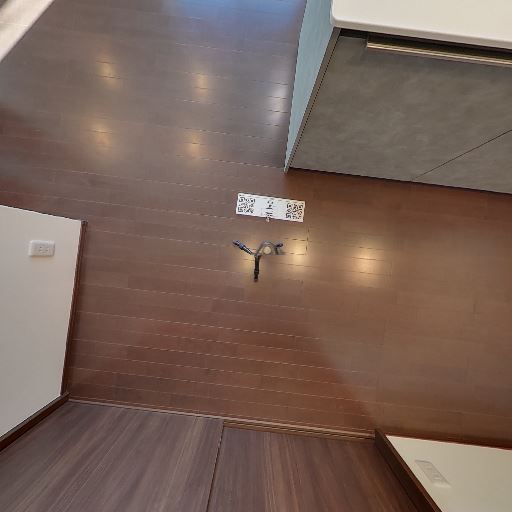 室内洗濯機置き場あり(確度86%):床面に防水パンと給排水口のあるスペースが確認できる。