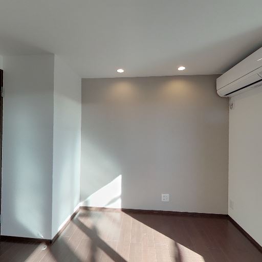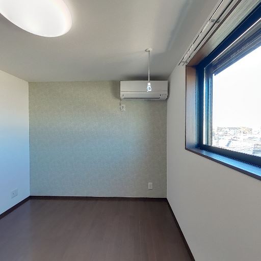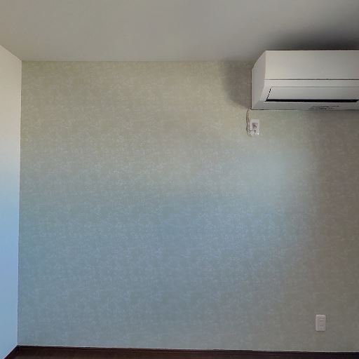エアコン設置済み(確度92%):室内に壁掛けエアコンが取り付けられている。