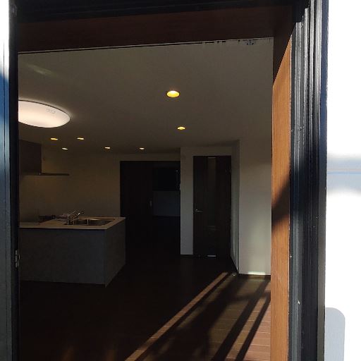 室内への採光(確度70%):バルコニー側の掃き出し窓から室内に日差しが入っている。