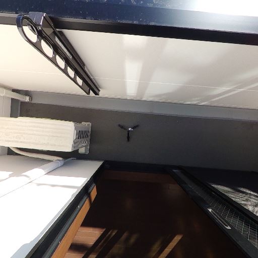 室内物干し(ホスクリーン)(確度82%):天井から吊り下げ型の物干し金具が2カ所見える。